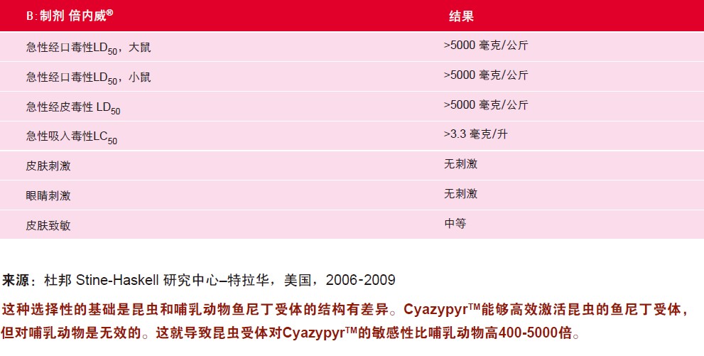 CyazypyrTM(A) 和杜邦TM倍內(nèi)威®(B)的毒性