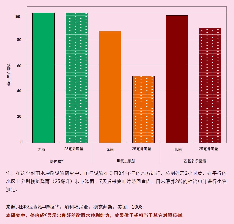 杜邦TM倍內(nèi)威®在雨水沖刷后對2齡棉鈴蟲的防治效果