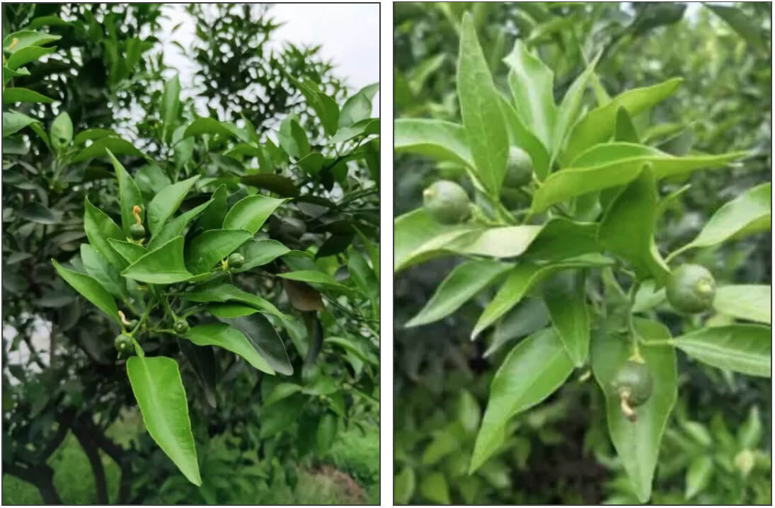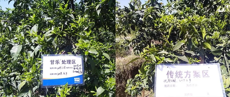 今年橘樹剛萌芽出來的新葉有點卷,不厚實不夠綠;我嘗試用免費申請的甘樂樣品按照推薦用量750倍進行了葉噴,使用后不到10天,柑橘葉片明顯轉(zhuǎn)綠,手感比較厚實,葉片明顯舒展開了,對比效果一眼就能看出!我身邊很多的種植戶朋友進我園子都會說今年的果子看上去長得更好了。