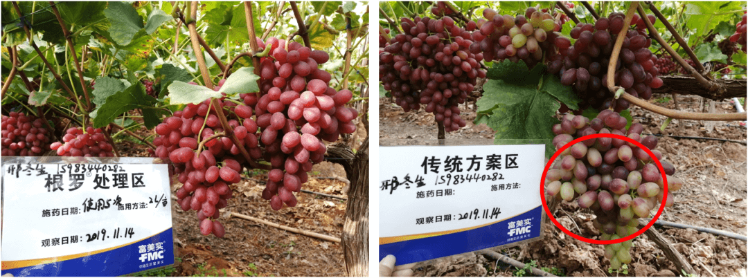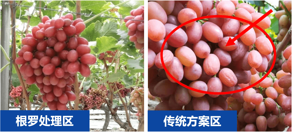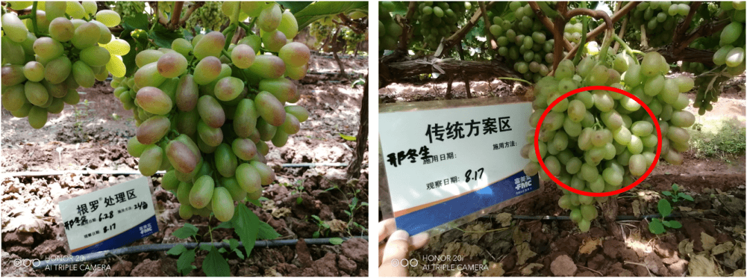 根羅®處理區(qū)土壤健康,樹勢(shì)健壯,最終的表現(xiàn)為轉(zhuǎn)色均勻、顏色鮮艷,軟果少。