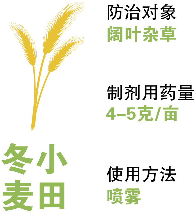 除草速度快:能快速的防除麥田闊葉雜草?s短雜草與小麥共生危害期,增產(chǎn)更顯著。