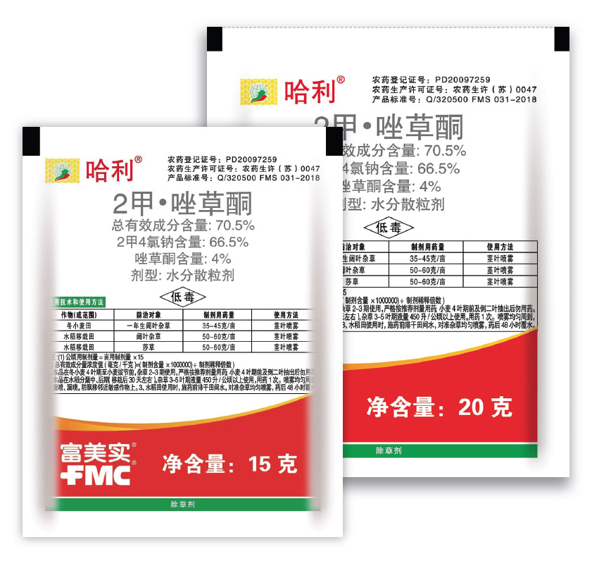 哈利® 是美國(guó)富美實(shí)(FMC) 公司研制開(kāi)發(fā)的高效除草劑,具有強(qiáng)烈的觸殺和內(nèi)吸傳導(dǎo)性能,能迅速鏟除雜草而對(duì)作物安全。對(duì)水稻田的野荸薺、三棱草、水竹葉等抗性闊葉草有特效。