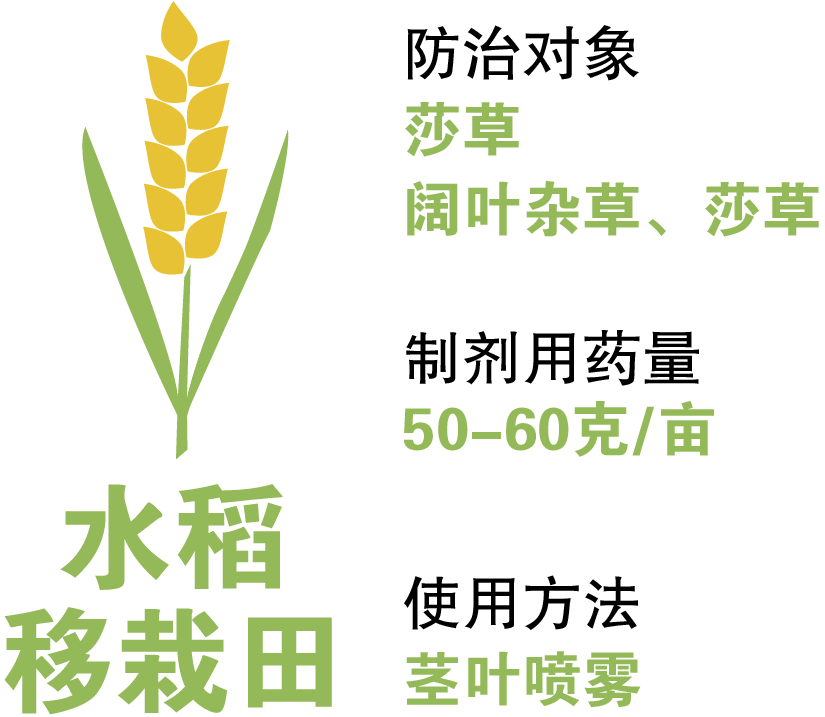 對(duì)作物安全: 推薦劑量和方法下使用,對(duì)水稻和下茬作物安全。