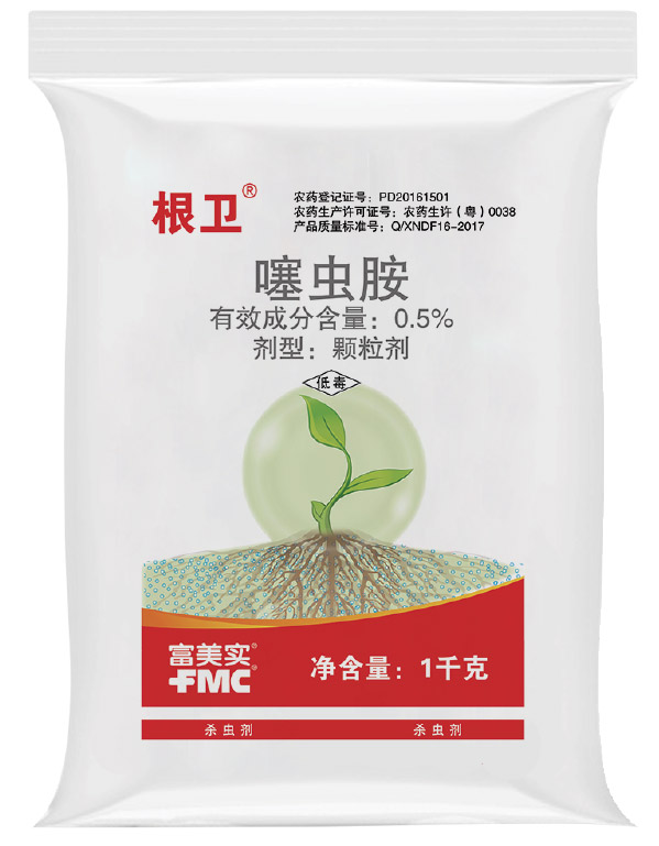 根衛(wèi)® 0.5% 顆粒劑是美國(guó)富美(FMC)公司開發(fā)的、在蔬菜登記的一種高效、低毒顆粒劑,具有卓越的內(nèi)吸和傳導(dǎo)性能,對(duì)甘蔗蔗螟、甘藍(lán)黃條跳甲等多種害蟲具有很好的防治效果,對(duì)作物安全且有明顯的促長(zhǎng)和增產(chǎn)作用。