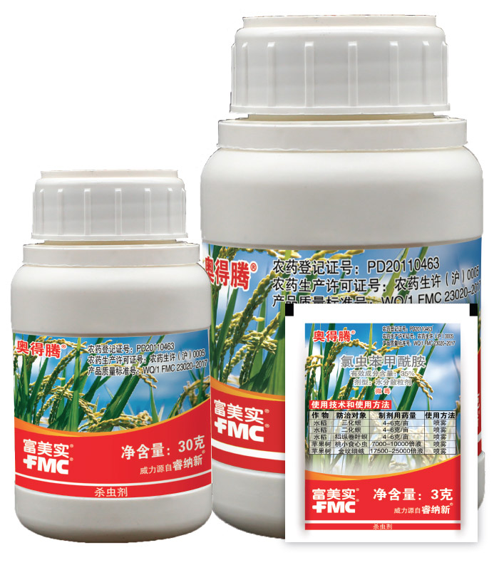 奧得騰® 是基于氯蟲苯甲酰胺的高效水稻、蘋果殺蟲劑,具有新型作用機(jī)理。施藥后幾分鐘內(nèi)害蟲立即停止取食,迅速保護(hù)作物。殺蟲譜廣,針對(duì)稻縱卷葉螟、二化螟、三化螟、大螟和稻水象甲等稻田害蟲,桃小食心蟲、金紋夜蛾等蘋果樹害蟲均能高效防除。作為內(nèi)吸性殺蟲劑,奧得騰® 能有效保護(hù)全株作物,包括新生葉片,因此持效期較長(zhǎng),幫助減少施藥次數(shù);同時(shí)是一款水分散粒劑,流動(dòng)性能好,無(wú)粉塵飛揚(yáng),便于種植者使用。微毒農(nóng)藥,對(duì)作物、人、環(huán)境安全。