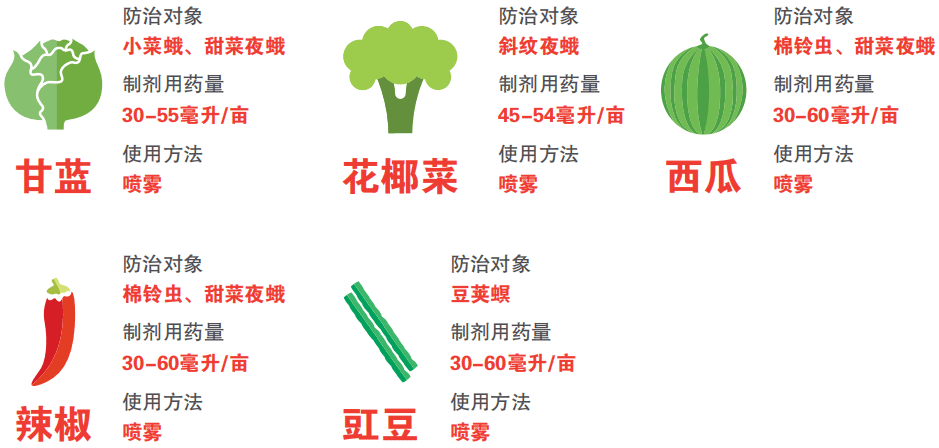 普尊® 是基于氯蟲苯甲酰胺的蔬菜專用殺蟲劑,全新作用機(jī)理,可高效、持久的防治甘藍(lán)、花椰菜、辣椒等作物上的常見害蟲,對小菜蛾、甜菜夜蛾、豆莢螟等頑固害蟲防效優(yōu)異。施藥后迅速阻止害蟲取食,保障蔬菜品質(zhì);獨(dú)特的內(nèi)吸性可提供持久保護(hù),減少施藥次數(shù)。本品微毒,正確使用對施藥者和作物安全,對有益天敵安全,綠色環(huán)保無公害。