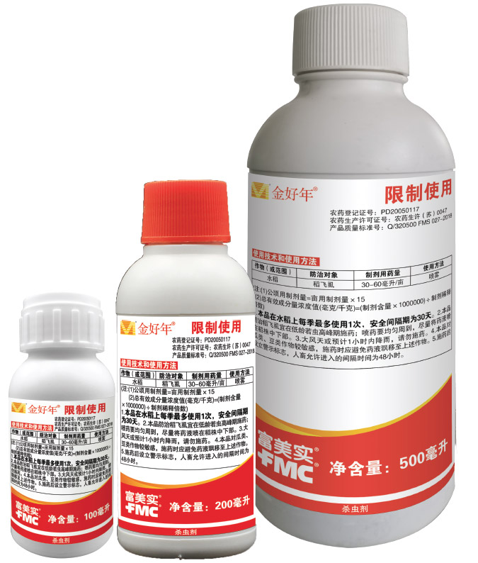 金好年® (MARS ® )是美國富美實(FMC) 公司研制的高效無公害殺蟲劑產(chǎn)品,具有殺蟲速度快、殺蟲譜廣、活性高、毒性低等特點,對水稻稻飛虱防效顯著。