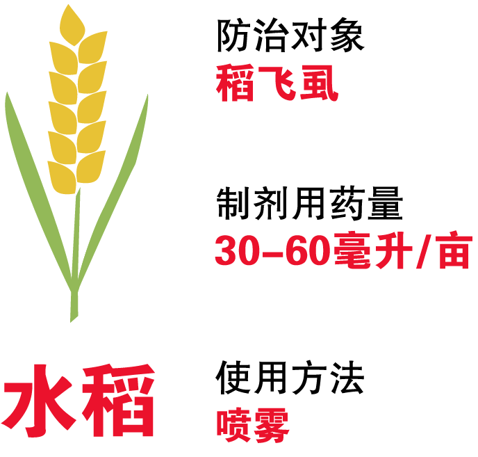 機理獨特:具有內(nèi)吸、胃毒、觸殺三大作用方式;對刺吸式口器害蟲高效,是防治稻飛虱的理想藥劑。