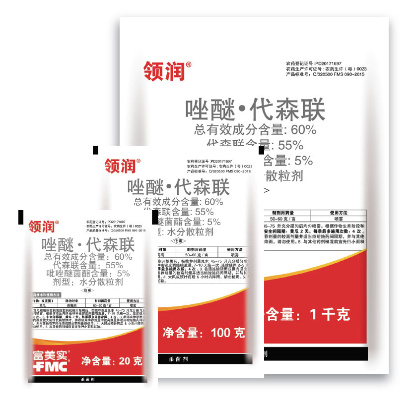 領(lǐng)潤® 是美國富美實(shí)(FMC)公司推出的兼具保護(hù)和治療雙重功效的廣譜型殺菌劑,采用全球領(lǐng)先的干懸浮造粒工藝技術(shù)精制而成,有效防止病菌孢子的萌發(fā)和侵入,保護(hù)葉片免受病害侵?jǐn)_,使用后作物葉片更濃綠,激發(fā)作物自身健康能效,增強(qiáng)作物長勢,幫助種植者安心豐收。