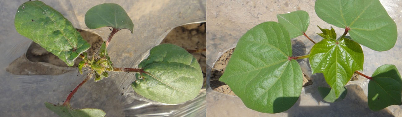銳勝包衣棉花出苗整齊,成苗率高(播后25天) 銳勝包衣棉花苗齊苗壯(播后36天)