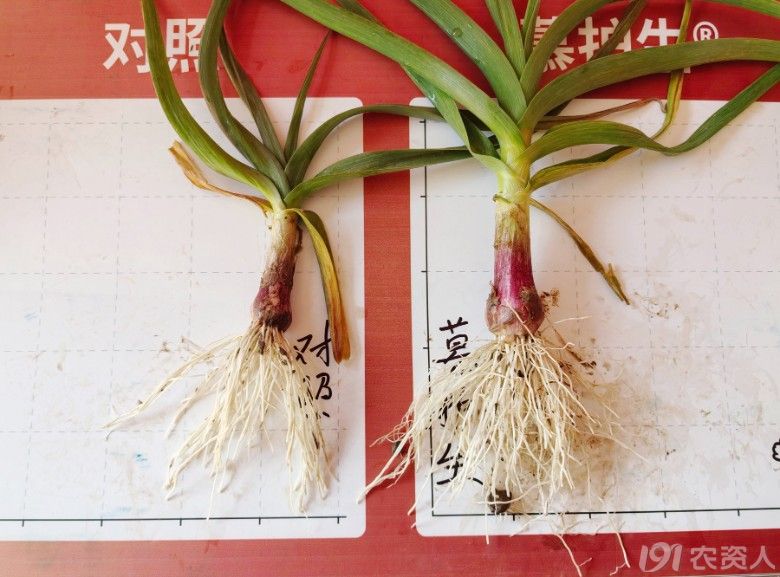 慕護(hù)生®處理的大蒜根系長(zhǎng)勢(shì)對(duì)比 | 圖源:慕恩生物