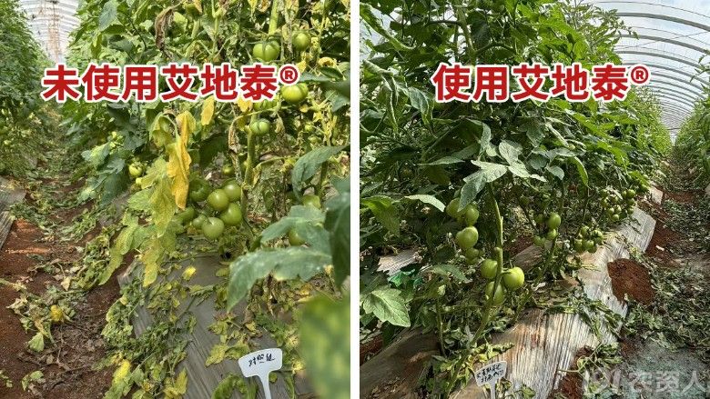 艾地泰®處理的番茄抗病效果對(duì)比 | 圖源:慕恩生物